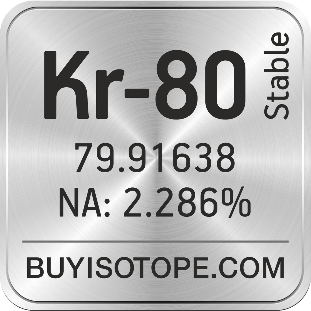 Kr-80 isotope is available to order from BuyIsotope.com in Kr-80 gas (Kr) chemical form. Please contact us via request a Kr-80 quote BuyIsotope.com to order Kr-80 isotope, to get Kr-80 price and to buy Kr-80 isotope.