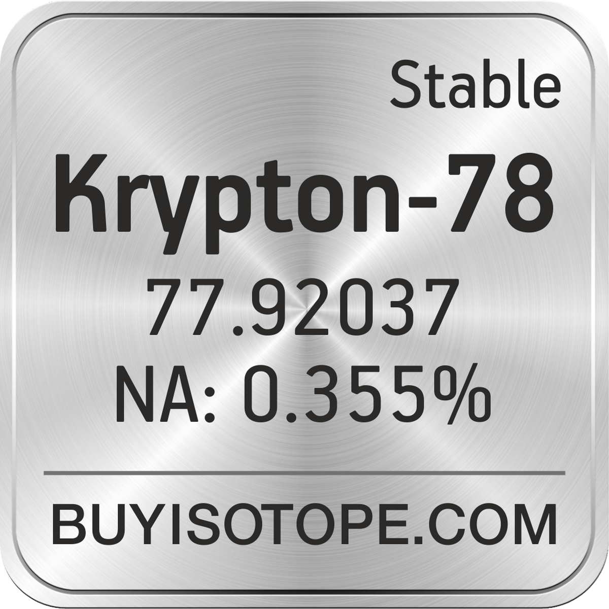 Krypton-78 isotope is available to order from BuyIsotope.com in Krypton-78 gas (Kr) chemical form. Please contact us via request a Krypton-78 quote BuyIsotope.com to order Krypton-78 isotope, to get Krypton-78 price and to buy Krypton-78 isotope.