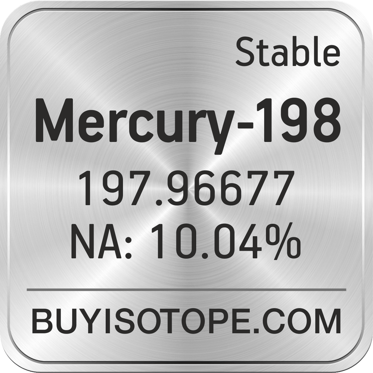 Mercury-198 isotope is available to order from BuyIsotope.com in Mercury-198 metal (Hg) chemical form and in Mercury-198 oxide (HgO) chemical form. Please contact us via request a Mercury-198 quote BuyIsotope.com to order Mercury-198 isotope, to get Mercury-198 price and to buy Mercury-198 isotope.