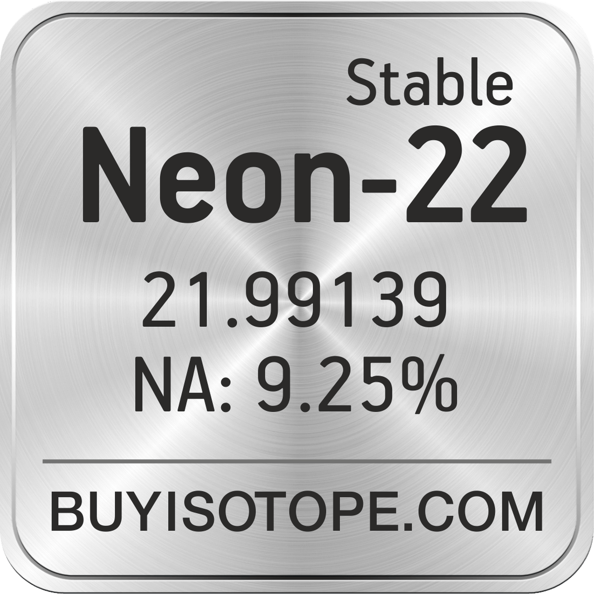Neon-22 isotope is available to order from BuyIsotope.com in Neon-22 gas (Ne) chemical form. Please contact us via request a Neon-22 quote BuyIsotope.com to order Neon-22 isotope, to get Neon-22 price and to buy Neon-22 isotope.