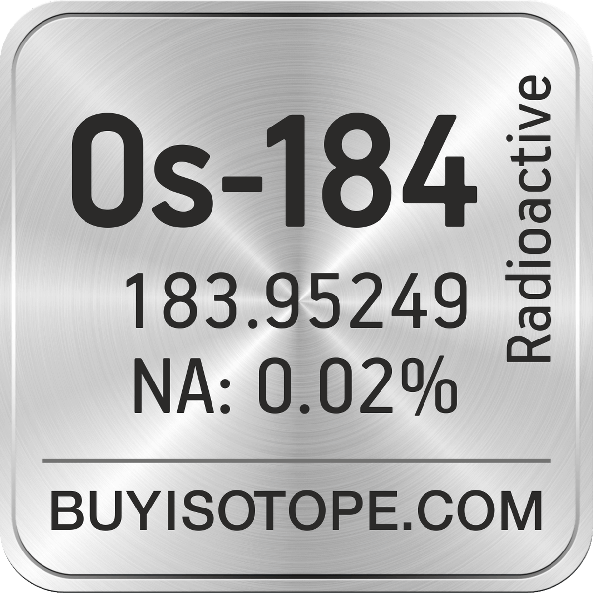 Os-184 isotope is available to order from BuyIsotope.com in Os-184 metal (Os) chemical form. Please contact us via request a Os-184 quote BuyIsotope.com to order Os-184 isotope, to get Os-184 price and to buy Os-184 isotope.