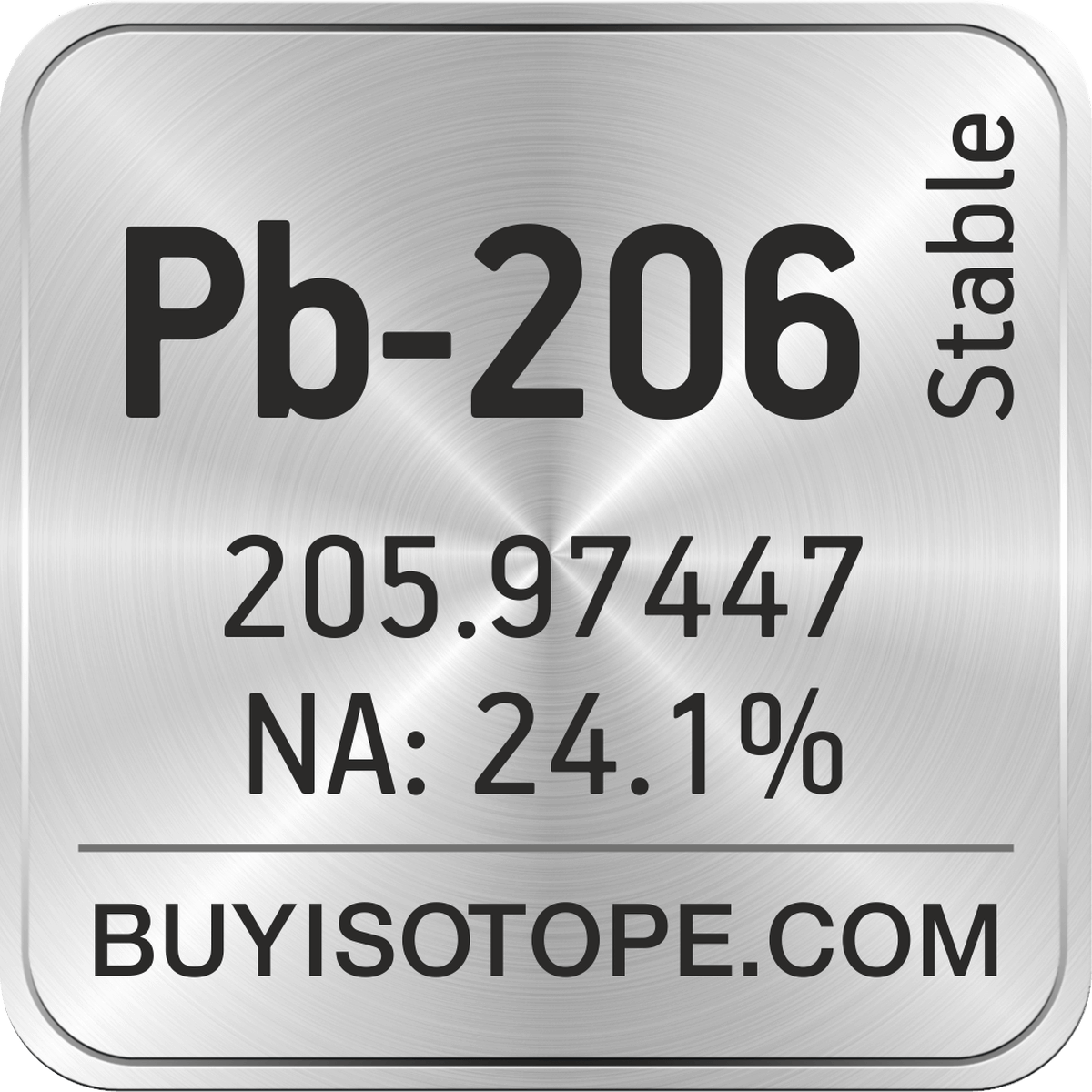 Pb-206 isotope is available to order from BuyIsotope.com in Pb-206 metal (Pb) chemical form and in Pb-206 oxide (PbO) chemical form. Please contact us via request a Pb-206 quote BuyIsotope.com to order Pb-206 isotope, to get Pb-206 price and to buy Pb-206 isotope.