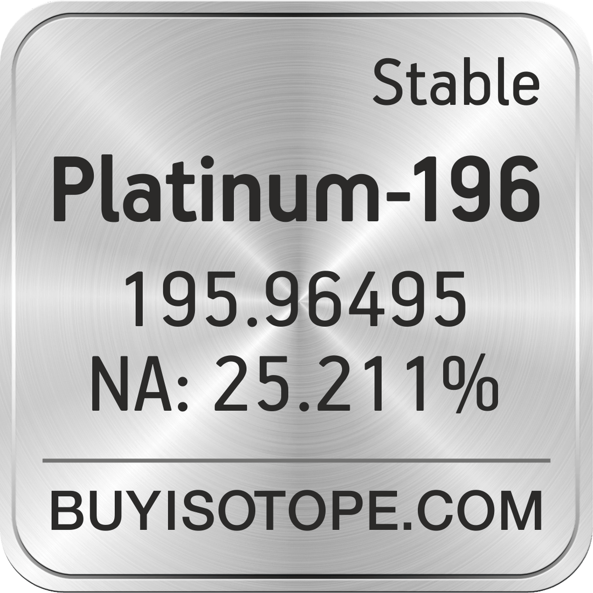 Platinum-196 isotope is available to order from BuyIsotope.com in Platinum-196 metal foil (Pt) chemical form and in Platinum-196 metal powder (Pt) chemical form. Please contact us via request a Platinum-196 quote BuyIsotope.com to order Platinum-196 isotope, to get Platinum-196 price and to buy Platinum-196 isotope.