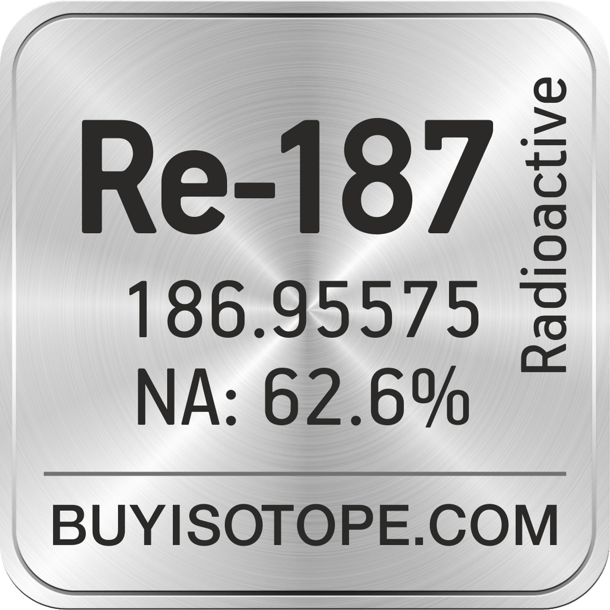 Re-187 isotope is available to order from BuyIsotope.com in Re-187 metal foil (Re) chemical form and in Re-187 metal powder (Re) chemical form. Please contact us via request a Re-187 quote BuyIsotope.com to order Re-187 isotope, to get Re-187 price and to buy Re-187 isotope.