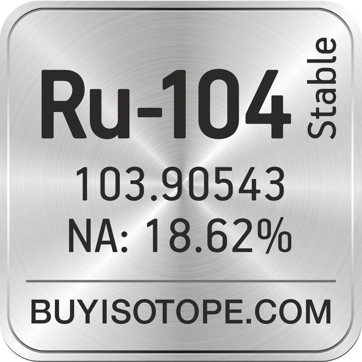 Ru-104 isotope is available to order from BuyIsotope.com in Ru-104 metal foil (Ru) chemical form and in Ru-104 metal powder (Ru) chemical form. Please contact us via request a Ru-104 quote BuyIsotope.com to order Ru-104 isotope, to get Ru-104 price and to buy Ru-104 isotope.