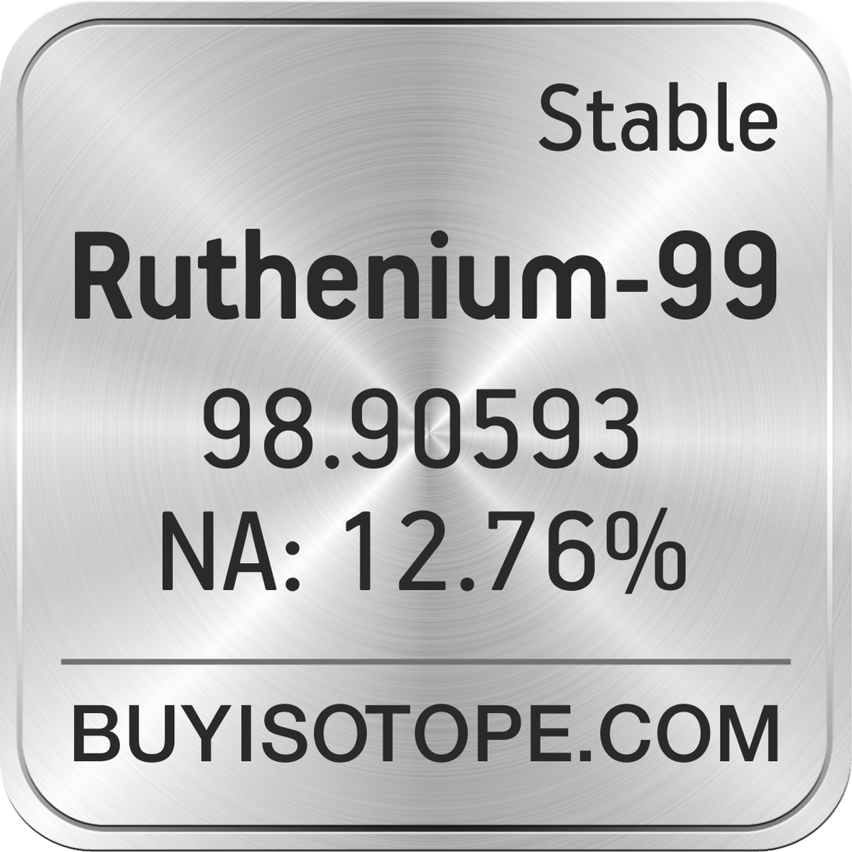 Ruthenium-99 isotope is available to order from BuyIsotope.com in Ruthenium-99 metal foil (Ru) chemical form and in Ruthenium-99 metal powder (Ru) chemical form. Please contact us via request a Ruthenium-99 quote BuyIsotope.com to order Ruthenium-99 isotope, to get Ruthenium-99 price and to buy Ruthenium-99 isotope.