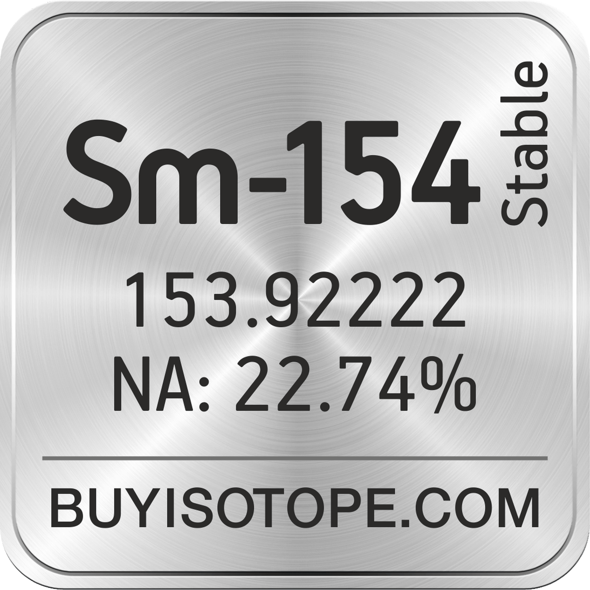 Sm-154 isotope is available to order from BuyIsotope.com in Sm-154 oxide (Sm2O3) chemical form. Please contact us via request a Sm-154 quote BuyIsotope.com to order Sm-154 isotope, to get Sm-154 price and to buy Sm-154 isotope.