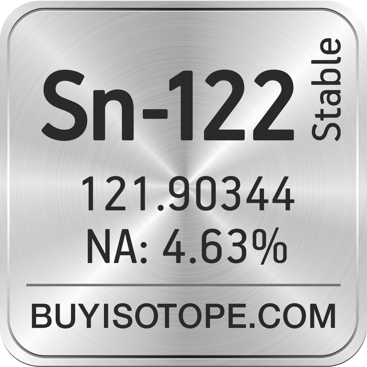 Sn-122 isotope is available to order from BuyIsotope.com in Sn-122 metal (Sn) chemical form. Please contact us via request a Sn-122 quote BuyIsotope.com to order Sn-122 isotope, to get Sn-122 price and to buy Sn-122 isotope.