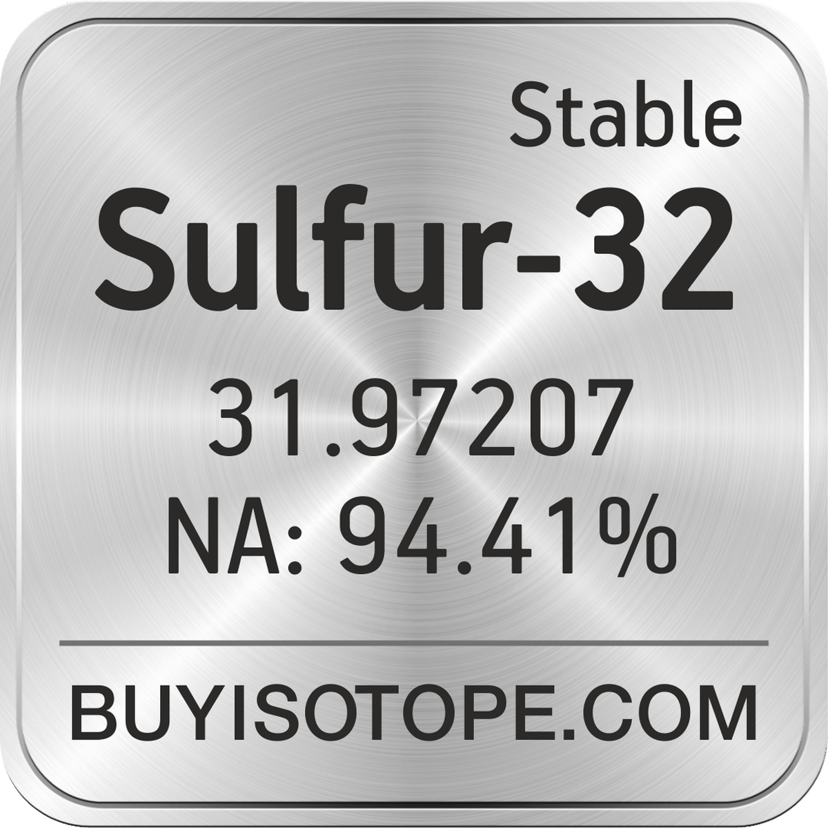 Sulfur-32 isotope is available to order from BuyIsotope.com in Sulfur-32 elemental (S) chemical form. Please contact us via request a Sulfur-32 quote BuyIsotope.com to order Sulfur-32 isotope, to get Sulfur-32 price and to buy Sulfur-32 isotope.