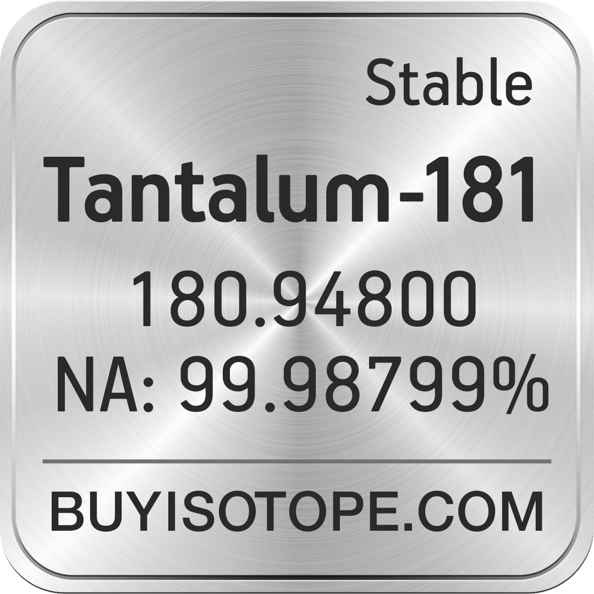 Tantalum-181 isotope is available to order from BuyIsotope.com in Tantalum-181 oxide (Ta2O5) chemical form. Please contact us via request a Tantalum-181 quote BuyIsotope.com to order Tantalum-181 isotope, to get Tantalum-181 price and to buy Tantalum-181 isotope.