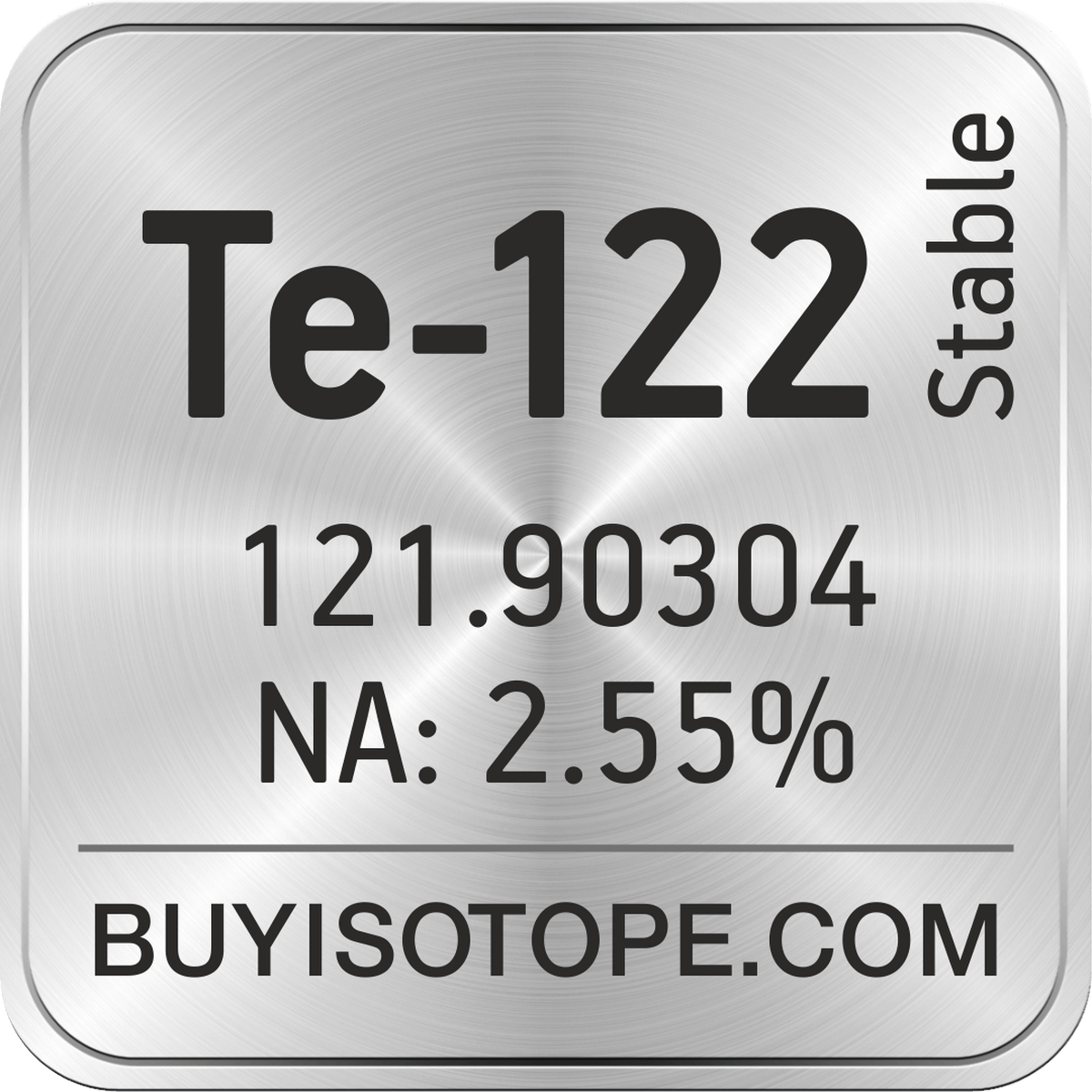 Te-122 isotope is available to order from BuyIsotope.com in Te-122 metal powder (Te) chemical form and in Te-122 oxide (TeO2) chemical form. Please contact us via request a Te-122 quote BuyIsotope.com to order Te-122 isotope, to get Te-122 price and to buy Te-122 isotope.