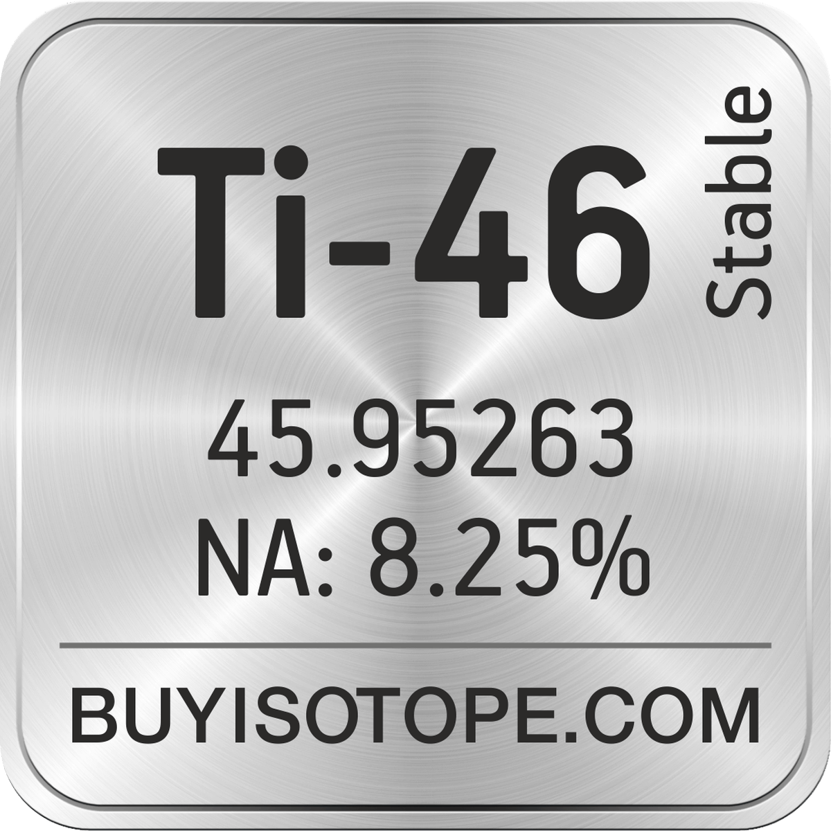 Ti-46 isotope is available to order from BuyIsotope.com in Ti-46 metal powder (Ti) chemical form and in Ti-46 oxide (TiO2) chemical form. Please contact us via request a Ti-46 quote BuyIsotope.com to order Ti-46 isotope, to get Ti-46 price and to buy Ti-46 isotope.