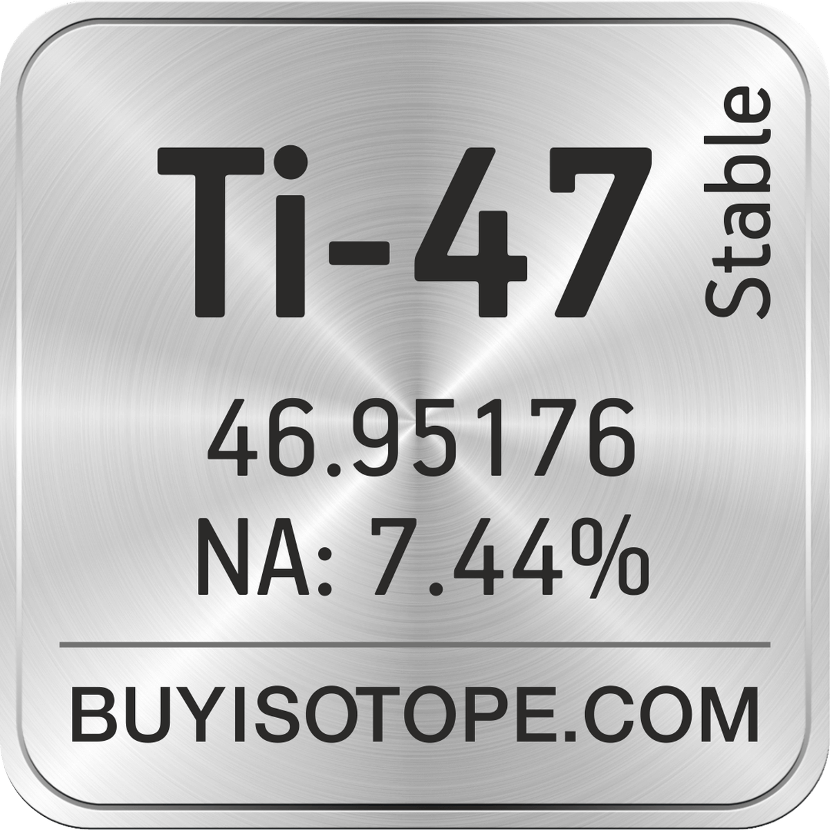 Ti-47 isotope is available to order from BuyIsotope.com in Ti-47 metal powder (Ti) chemical form and in Ti-47 oxide (TiO2) chemical form. Please contact us via request a Ti-47 quote BuyIsotope.com to order Ti-47 isotope, to get Ti-47 price and to buy Ti-47 isotope.