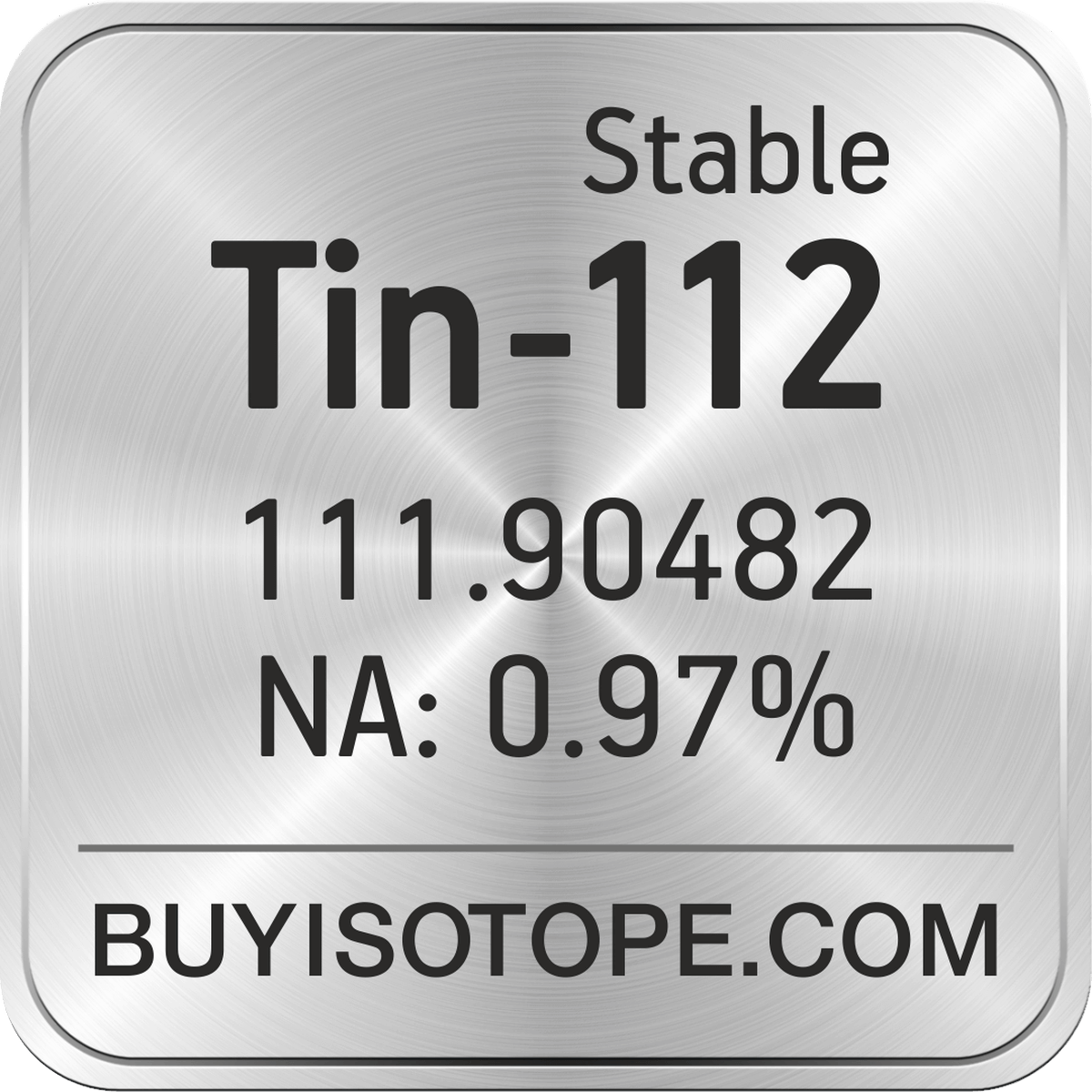 Tin-112 isotope is available to order from BuyIsotope.com in Tin-112 metal (Sn) chemical form. Please contact us via request a Tin-112 quote BuyIsotope.com to order Tin-112 isotope, to get Tin-112 price and to buy Tin-112 isotope.