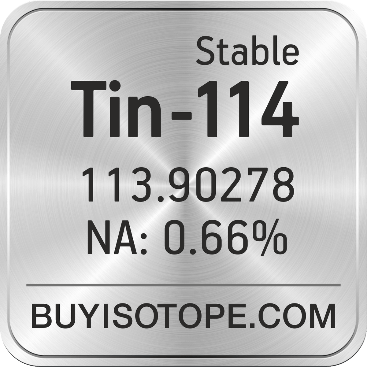 Tin-114 isotope is available to order from BuyIsotope.com in Tin-114 metal (Sn) chemical form. Please contact us via request a Tin-114 quote BuyIsotope.com to order Tin-114 isotope, to get Tin-114 price and to buy Tin-114 isotope.