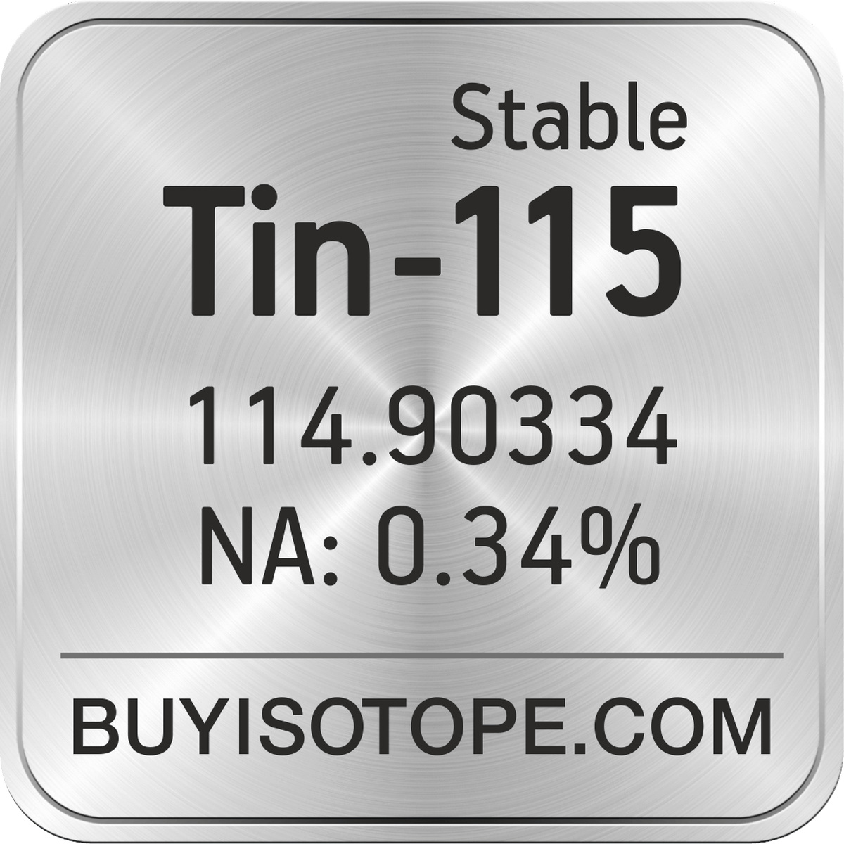 Tin-115 isotope is available to order from BuyIsotope.com in Tin-115 metal (Sn) chemical form. Please contact us via request a Tin-115 quote BuyIsotope.com to order Tin-115 isotope, to get Tin-115 price and to buy Tin-115 isotope.