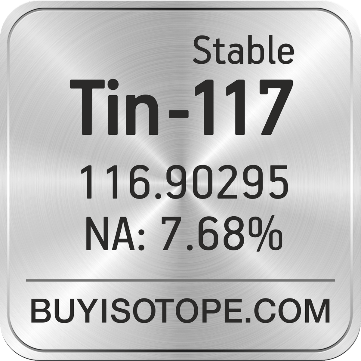 Tin-117 isotope is available to order from BuyIsotope.com in Tin-117 metal (Sn) chemical form. Please contact us via request a Tin-117 quote BuyIsotope.com to order Tin-117 isotope, to get Tin-117 price and to buy Tin-117 isotope.