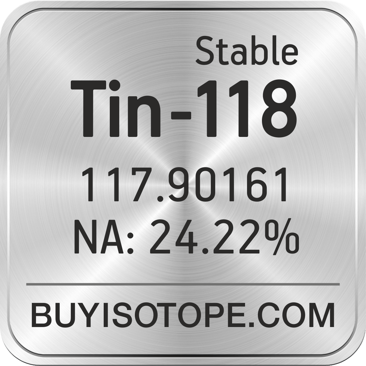 Tin-118 isotope is available to order from BuyIsotope.com in Tin-118 metal (Sn) chemical form. Please contact us via request a Tin-118 quote BuyIsotope.com to order Tin-118 isotope, to get Tin-118 price and to buy Tin-118 isotope.