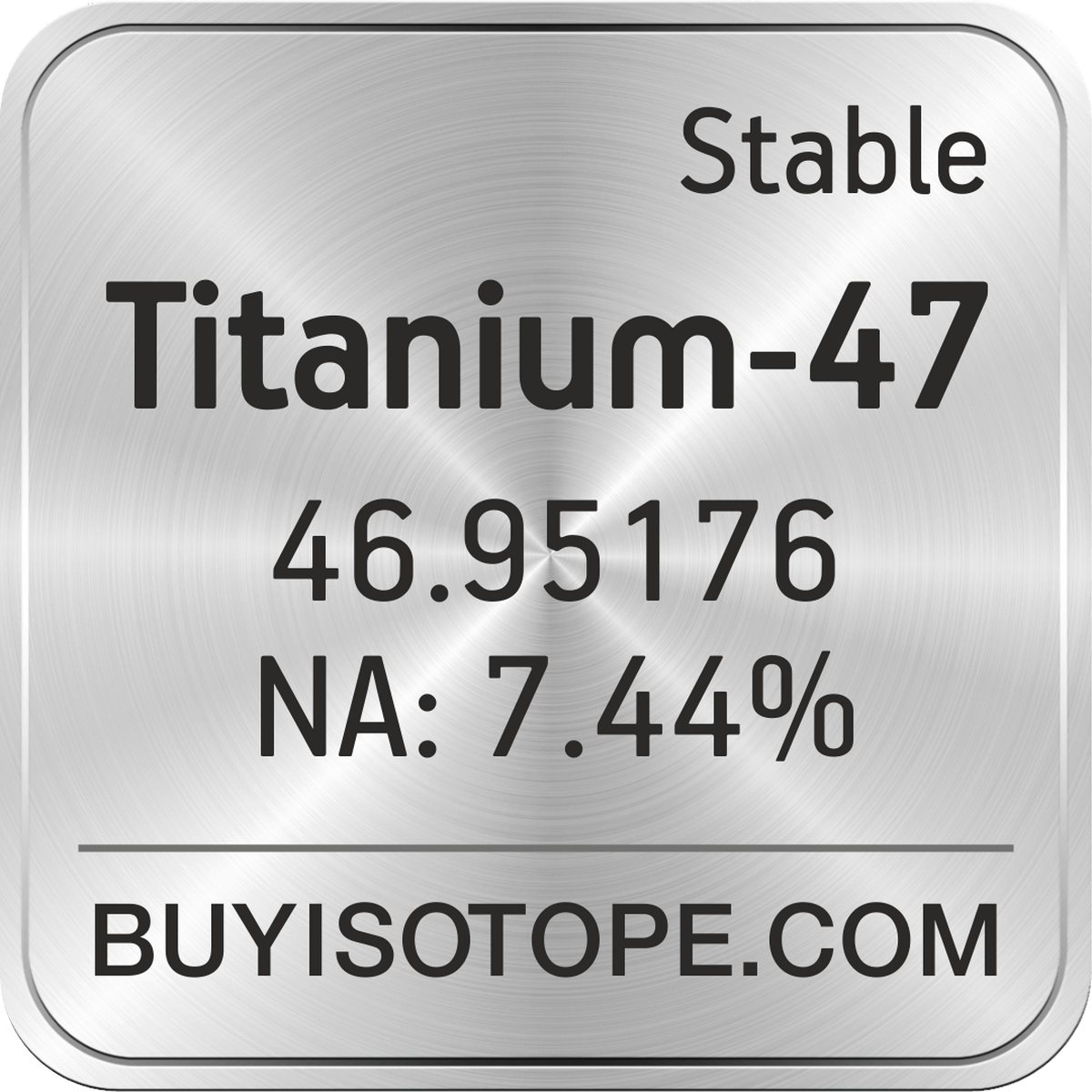 Titanium-47 isotope is available to order from BuyIsotope.com in Titanium-47 metal powder (Ti) chemical form and in Titanium-47 oxide (TiO2) chemical form. Please contact us via request a Titanium-47 quote BuyIsotope.com to order Titanium-47 isotope, to get Titanium-47 price and to buy Titanium-47 isotope.