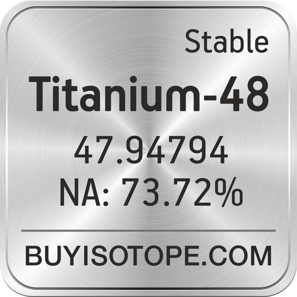 Titanium-48 isotope is available to order from BuyIsotope.com in Titanium-48 metal powder (Ti) chemical form and in Titanium-48 oxide (TiO2) chemical form. Please contact us via request a Titanium-48 quote BuyIsotope.com to order Titanium-48 isotope, to get Titanium-48 price and to buy Titanium-48 isotope.
