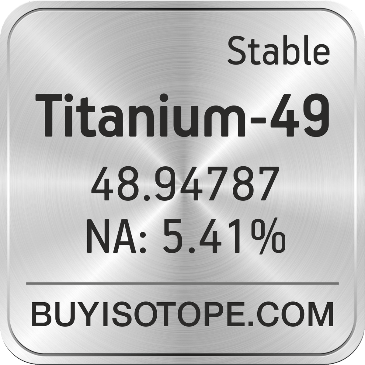 Titanium-49 isotope is available to order from BuyIsotope.com in Titanium-49 metal powder (Ti) chemical form and in Titanium-49 oxide (TiO2) chemical form. Please contact us via request a Titanium-49 quote BuyIsotope.com to order Titanium-49 isotope, to get Titanium-49 price and to buy Titanium-49 isotope.