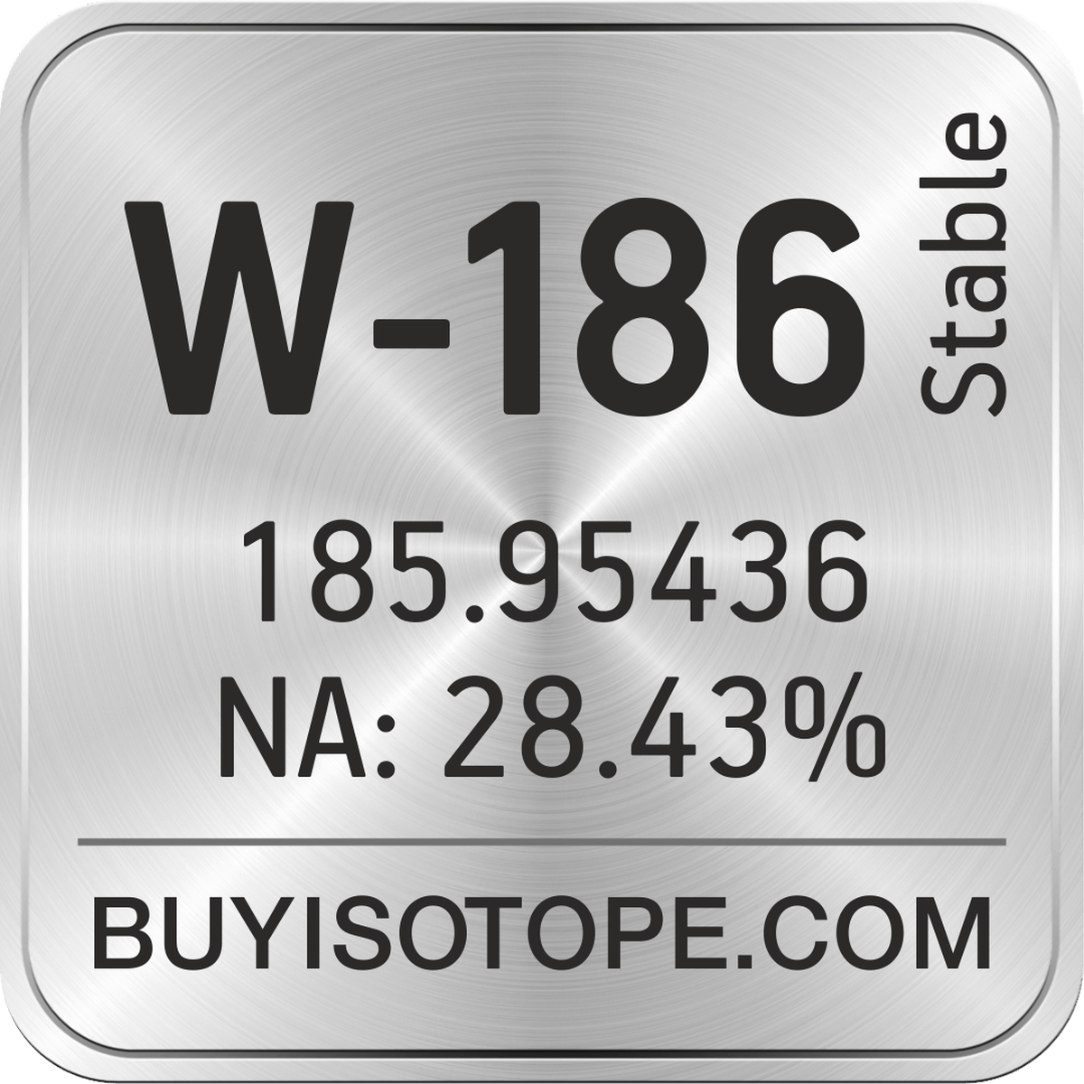 W-186 isotope is available to order from BuyIsotope.com in W-186 metal powder (W) chemical form and in W-186 oxide (WO3) chemical form. Please contact us via request a W-186 quote BuyIsotope.com to order W-186 isotope, to get W-186 price and to buy W-186 isotope.