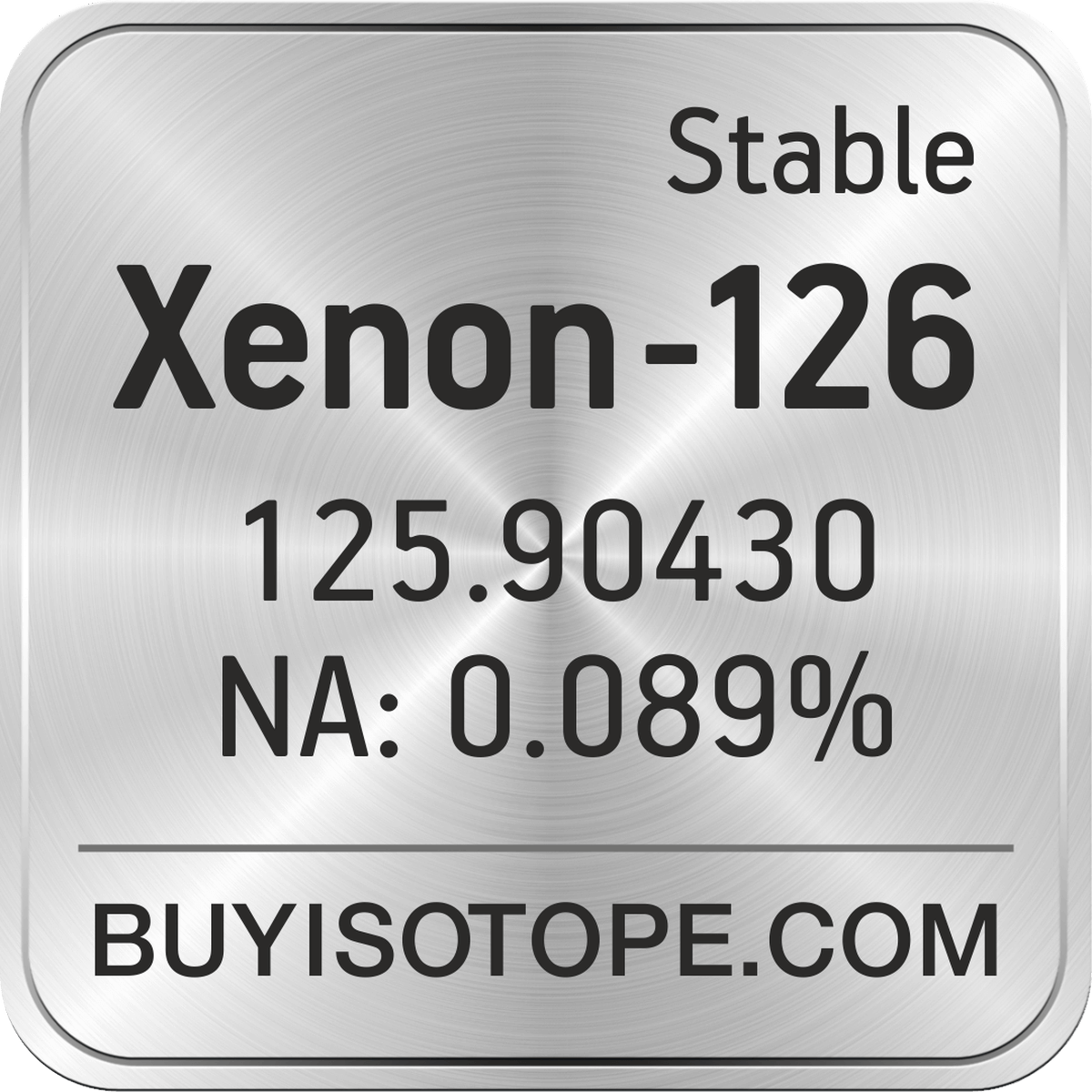 Xenon-126 isotope is available to order from BuyIsotope.com in Xenon-126 gas (Xe) chemical form. Please contact us via request a Xenon-126 quote BuyIsotope.com to order Xenon-126 isotope, to get Xenon-126 price and to buy Xenon-126 isotope.