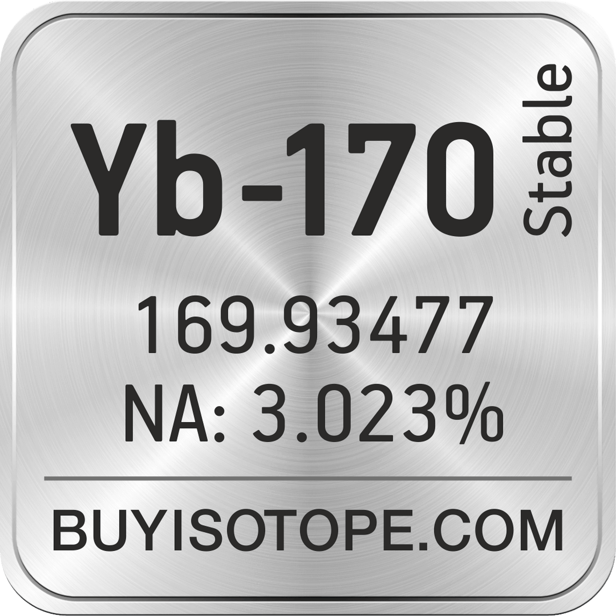 Yb-170 isotope is available to order from BuyIsotope.com in Yb-170 metal powder (Yb) chemical form and in Yb-170 oxide (Yb2O3) chemical form. Please contact us via request a Yb-170 quote BuyIsotope.com to order Yb-170 isotope, to get Yb-170 price and to buy Yb-170 isotope.