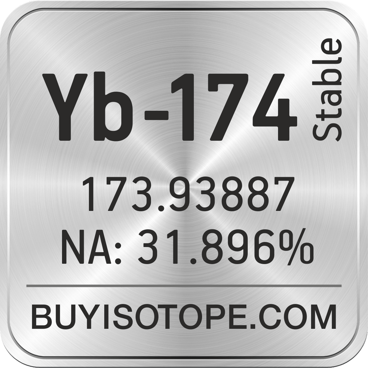 Yb-174 isotope is available to order from BuyIsotope.com in Yb-174 metal powder (Yb) chemical form and in Yb-174 oxide (Yb2O3) chemical form. Please contact us via request a Yb-174 quote BuyIsotope.com to order Yb-174 isotope, to get Yb-174 price and to buy Yb-174 isotope.
