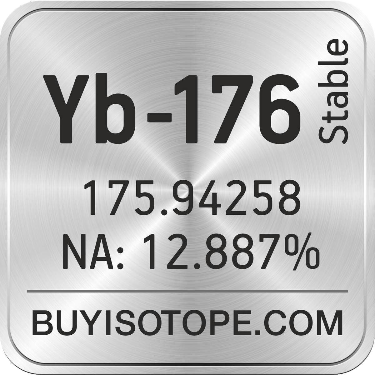 Yb-176 isotope is available to order from BuyIsotope.com in Yb-176 metal powder (Yb) chemical form and in Yb-176 oxide (Yb2O3) chemical form. Please contact us via request a Yb-176 quote BuyIsotope.com to order Yb-176 isotope, to get Yb-176 price and to buy Yb-176 isotope.