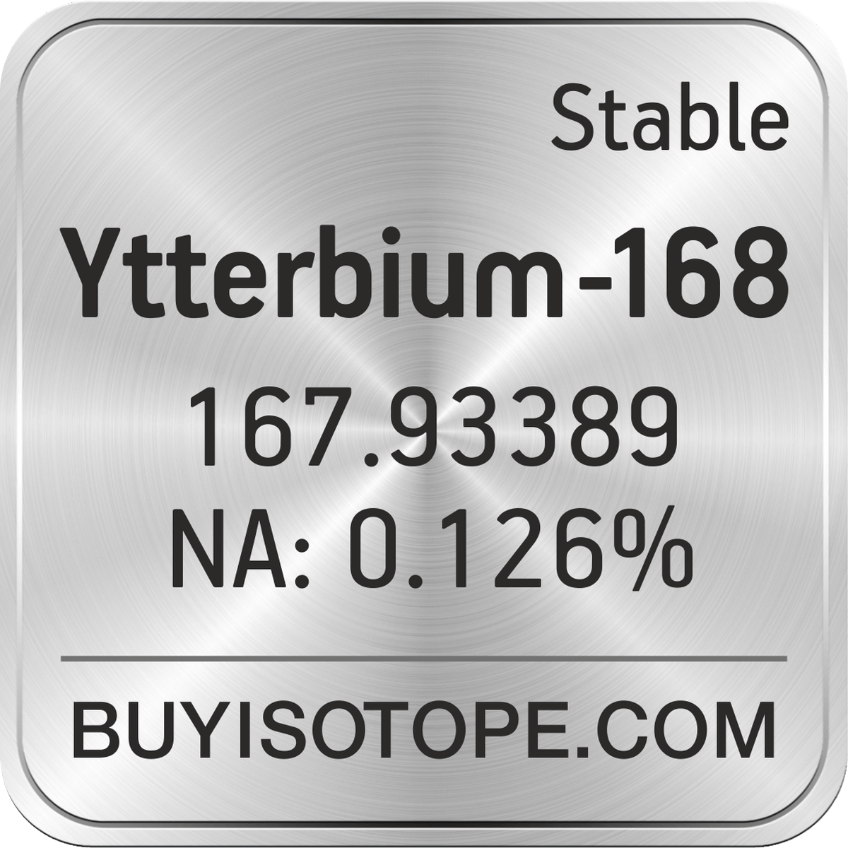 Ytterbium-168 isotope is available to order from BuyIsotope.com in Ytterbium-168 metal powder (Yb) chemical form and in Ytterbium-168 oxide (Yb2O3) chemical form. Please contact us via request a Ytterbium-168 quote BuyIsotope.com to order Ytterbium-168 isotope, to get Ytterbium-168 price and to buy Ytterbium-168 isotope.