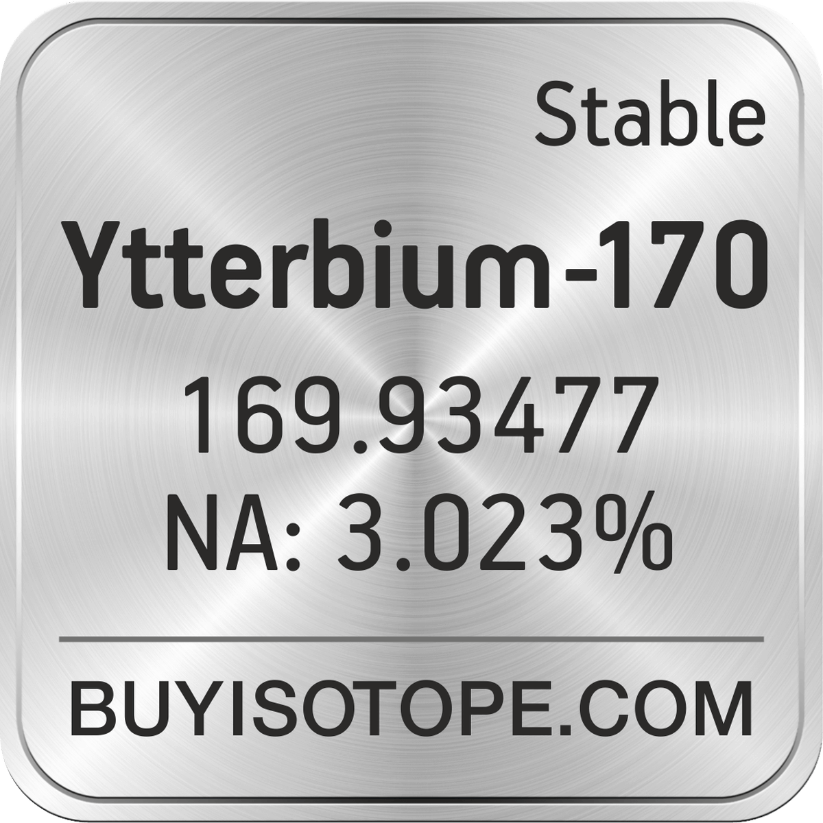 Ytterbium-170 isotope is available to order from BuyIsotope.com in Ytterbium-170 metal powder (Yb) chemical form and in Ytterbium-170 oxide (Yb2O3) chemical form. Please contact us via request a Ytterbium-170 quote BuyIsotope.com to order Ytterbium-170 isotope, to get Ytterbium-170 price and to buy Ytterbium-170 isotope.